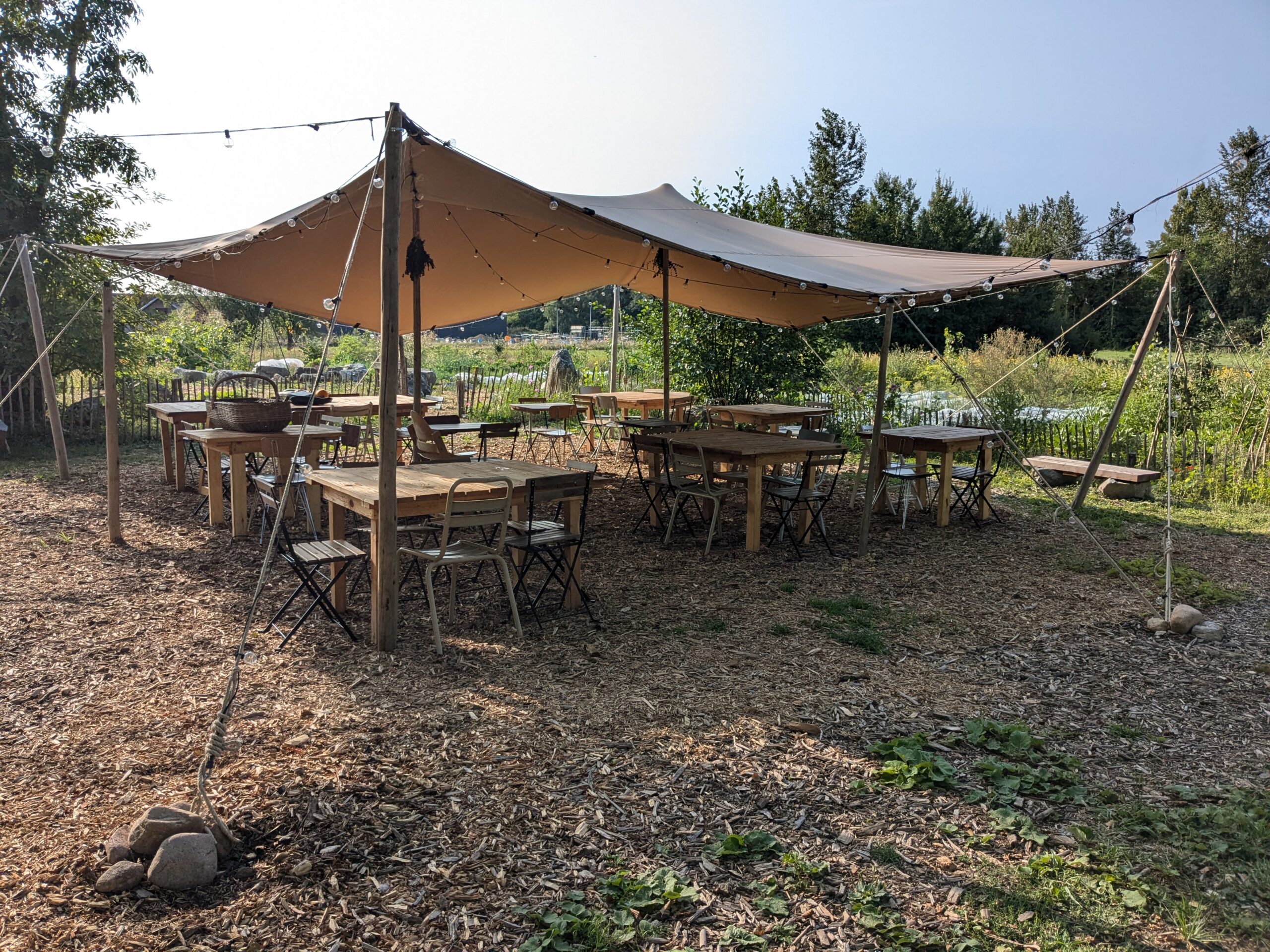 Nous n’avons pas d’espace intérieur. Nous avons une grande tente solide pour vous garder au sec, et des couvertures pour les soirées fraîches. Nous vous encourageons à vous préparer et à venir avec une veste ou un coupe-vent si le temps semble incertain.